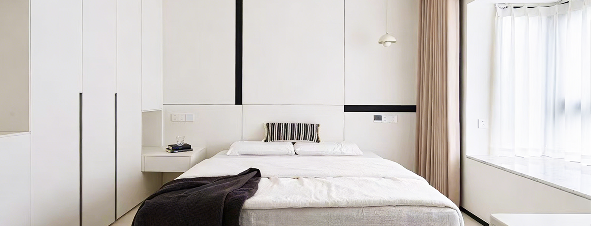 Furniture is constructed with eco-friendly, matte panels that resist scratches and wear, complemented by wood veneers or stone slabs to add visual depth. Invisible sealing and seamless joints ensure quiet, smooth operation. Floating and built-in designs reduce sanitary dead corners while emphasizing a minimalist luxury aesthetic.